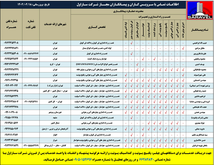 لیست سرویس کاران مجاز